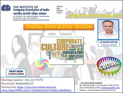EIRC's STUDENT MONT: Online Interactive Session on “CORPORATE CULTURE” from 3:30pm to 4:30pm