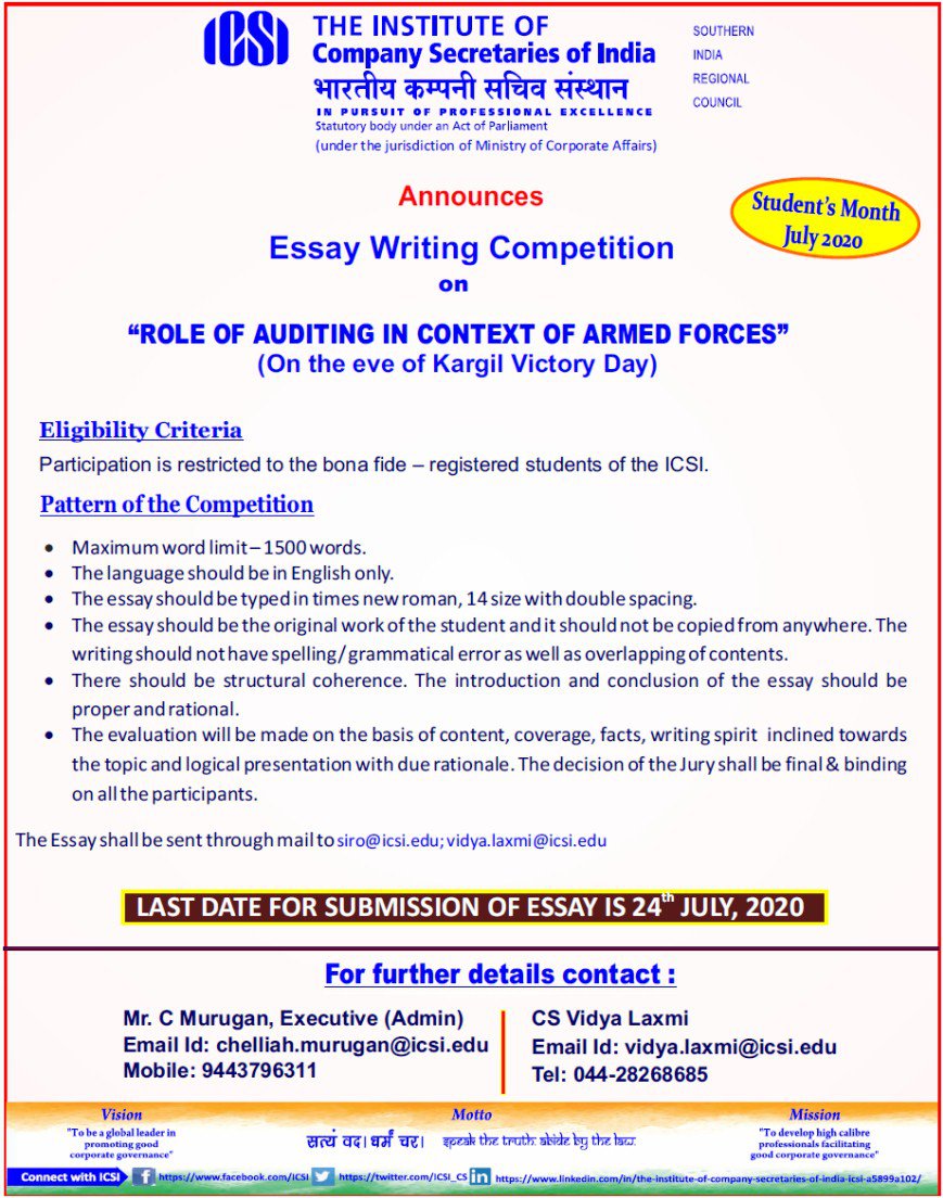 Kargil Victory Day - Essay Writing Competition on the theme : Role of Auditing in the context of Armed Forces on 26.07.2020