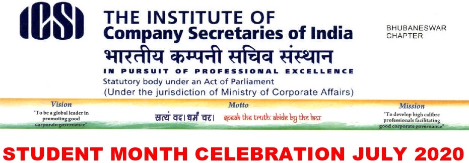 - Bhubaneswar Chapter is organising a Power Point Competition on the (Topic : Challenges faced by Company Secretaries during Coronavirus and lockdown period). PPT on the topic may please be sent to : bhubaneswar@icsi.edu with the name and registration number of the students. Timings of receipt of PPT from 10:00 AM - 6:00 PM. For details, please free to contact 0674-2552282 / 2551139.