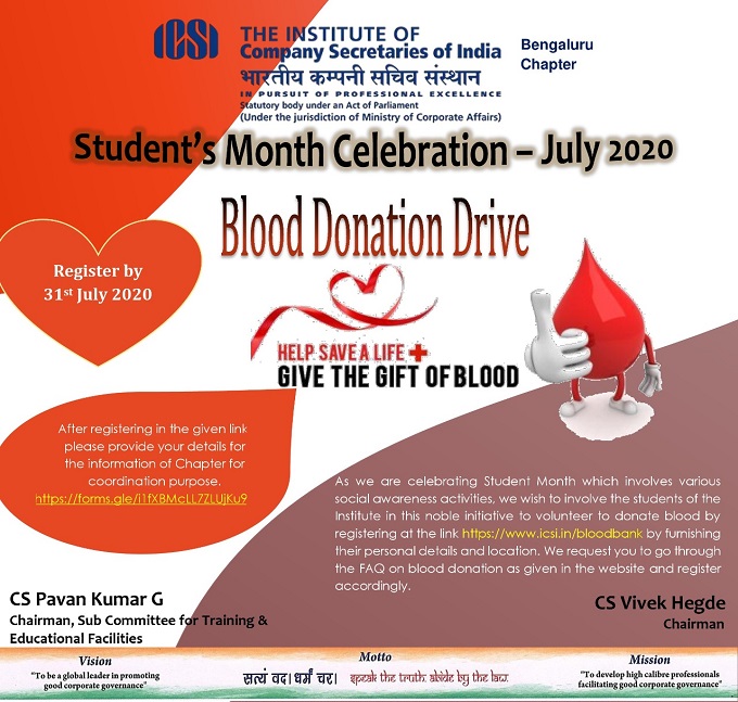 ICSI - Bengaluru Chapter is Organising Blood Donation Drive
