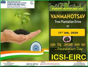 EIRC's STUDENT MONT: Van Mahotsav was celebrated in the occasion of Foundation Day of EIRC of ICSI on 31st July, 2020
