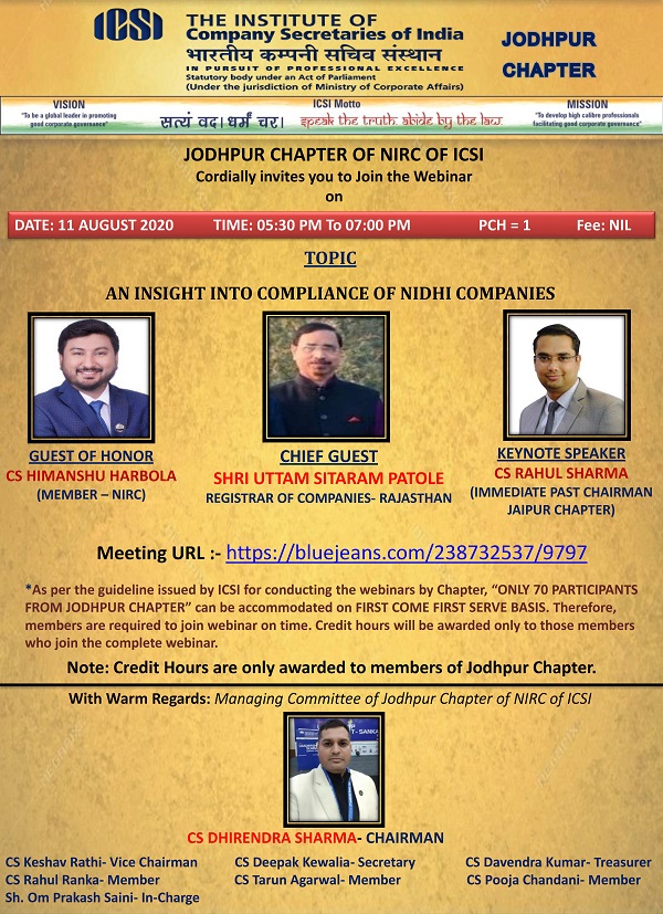 Webinar on "An Insight into compliance of Nidhi Companies"