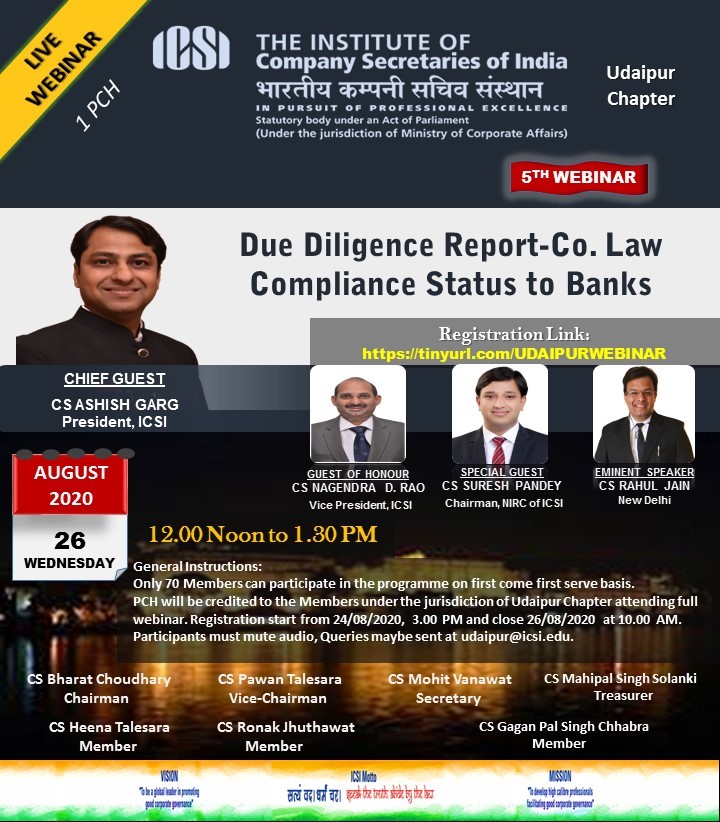5th Webinar on "Due Diligence Report-Co. Law Compliance Status to Banks"