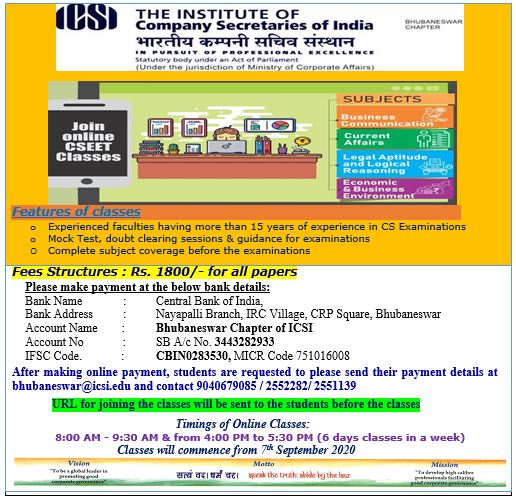 Bhubaneswar Chapter CSEET for November 2020 Examination