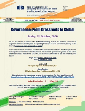 Webinar on ‘Model Governance Code for the Meetings of Gram Panchayats’on Friday, 2nd October, 2020 (from 5PM to 6.30PM)