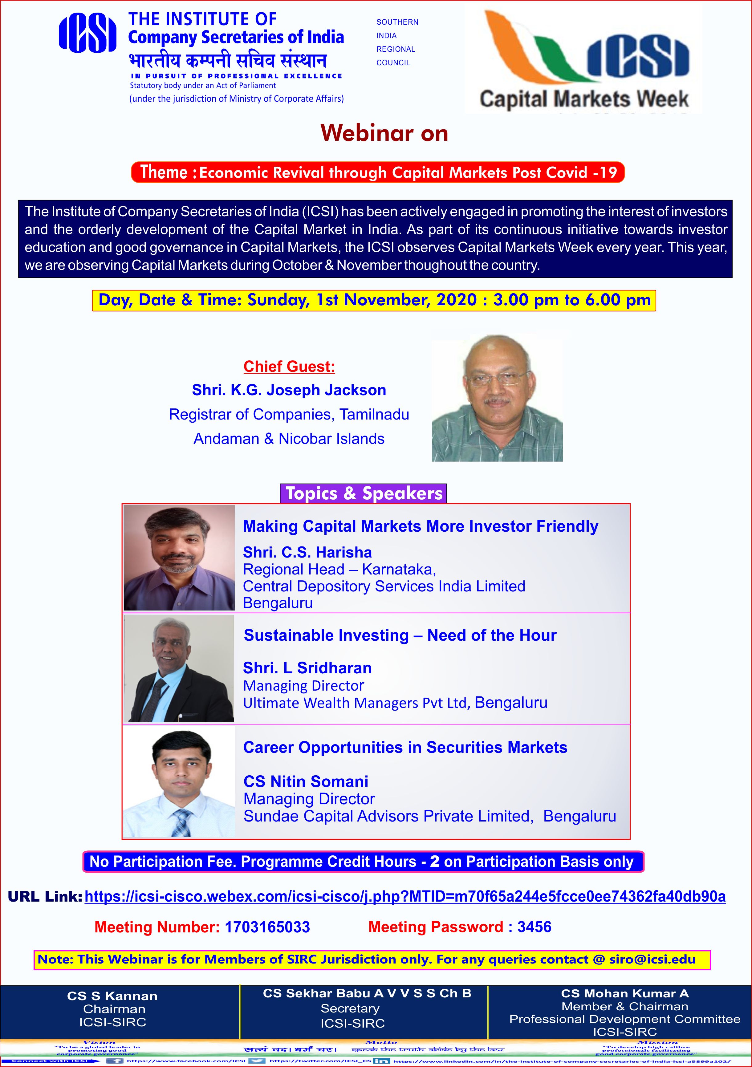 ICSI Capital Markets Week 2020 on Sunday, 1st November, 2020