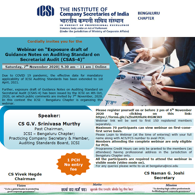 ICSI - Bengaluru Chapter organising a Webinar