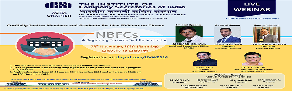 Live Webinar on Theme - NBFCs A Beginning Towards Self Reliant India