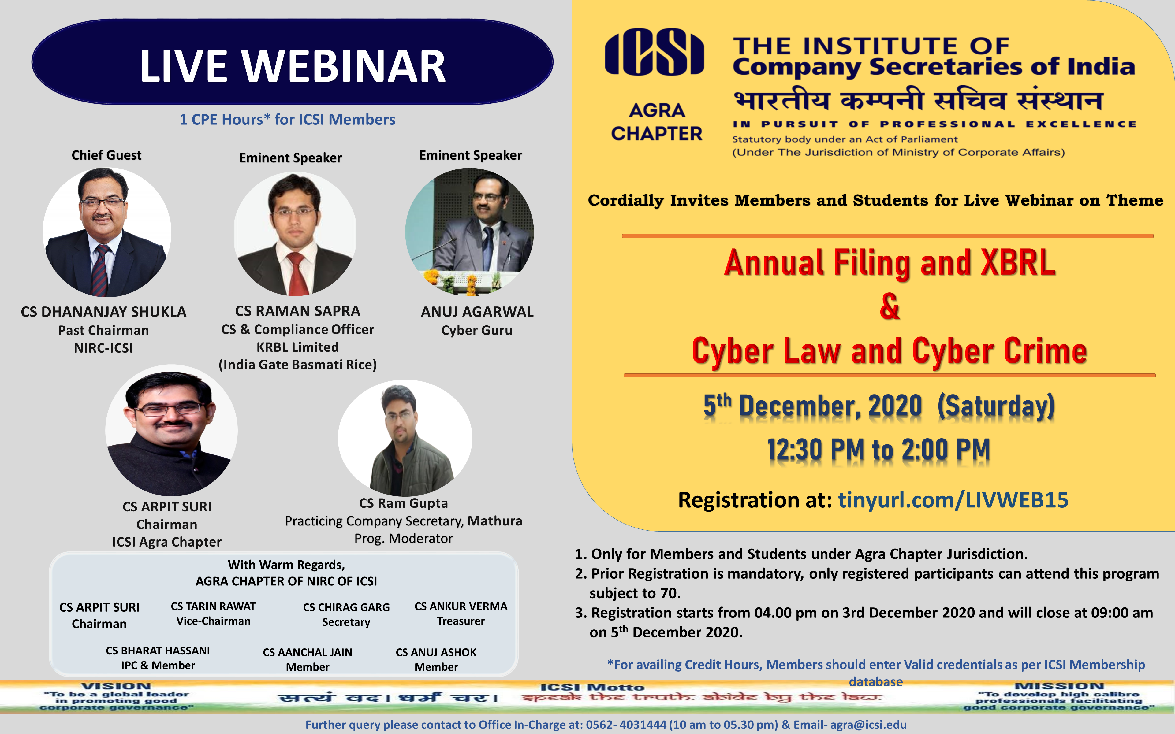 Webinar on 5 December, 2020 on theme “Annual Filing and XBRL & Cyber Law and Cyber Crime”