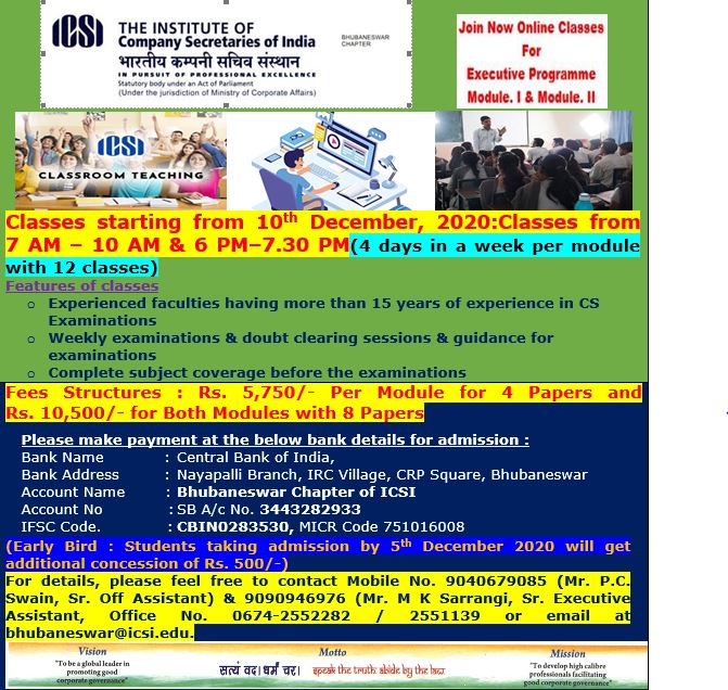 Bhubaneswar Chapter Executive Programme Online Classes