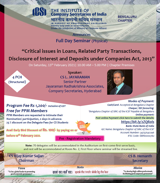 ICSI - Bengaluru Chapter is organizing a Full Day Seminar