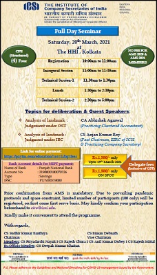 EIRC's Full Day Seminar on Saturday, 20th March, 2021 at Hotel Hindusthan International, Kolkata