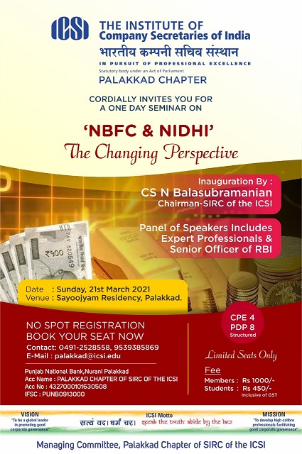 ONE DAY SEMINAR ON NBFC & NIDHI- The Changing Perspective