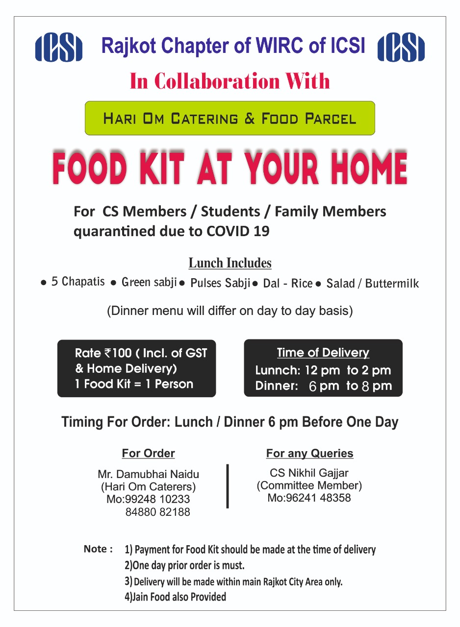 RAJKOT CHAPTER - FOOD KIT AT YOUR HOME - NEW INITIATIVE FOR MEMBERS, STUDENTS & THEIR FAMILY MEMBERS DURING COVID