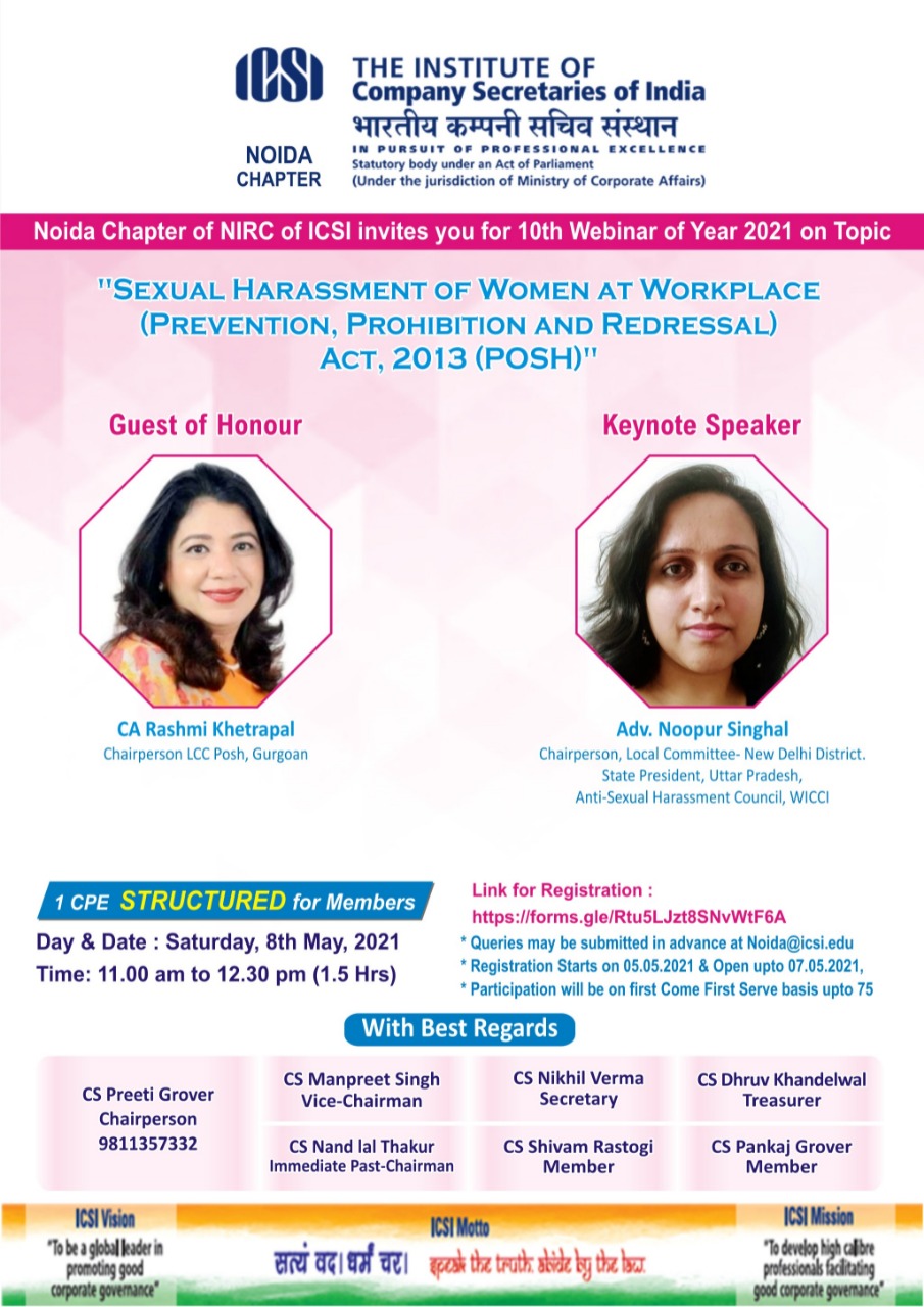 • Noida Chapter - Webinar on Saturday, 08th May, 2021