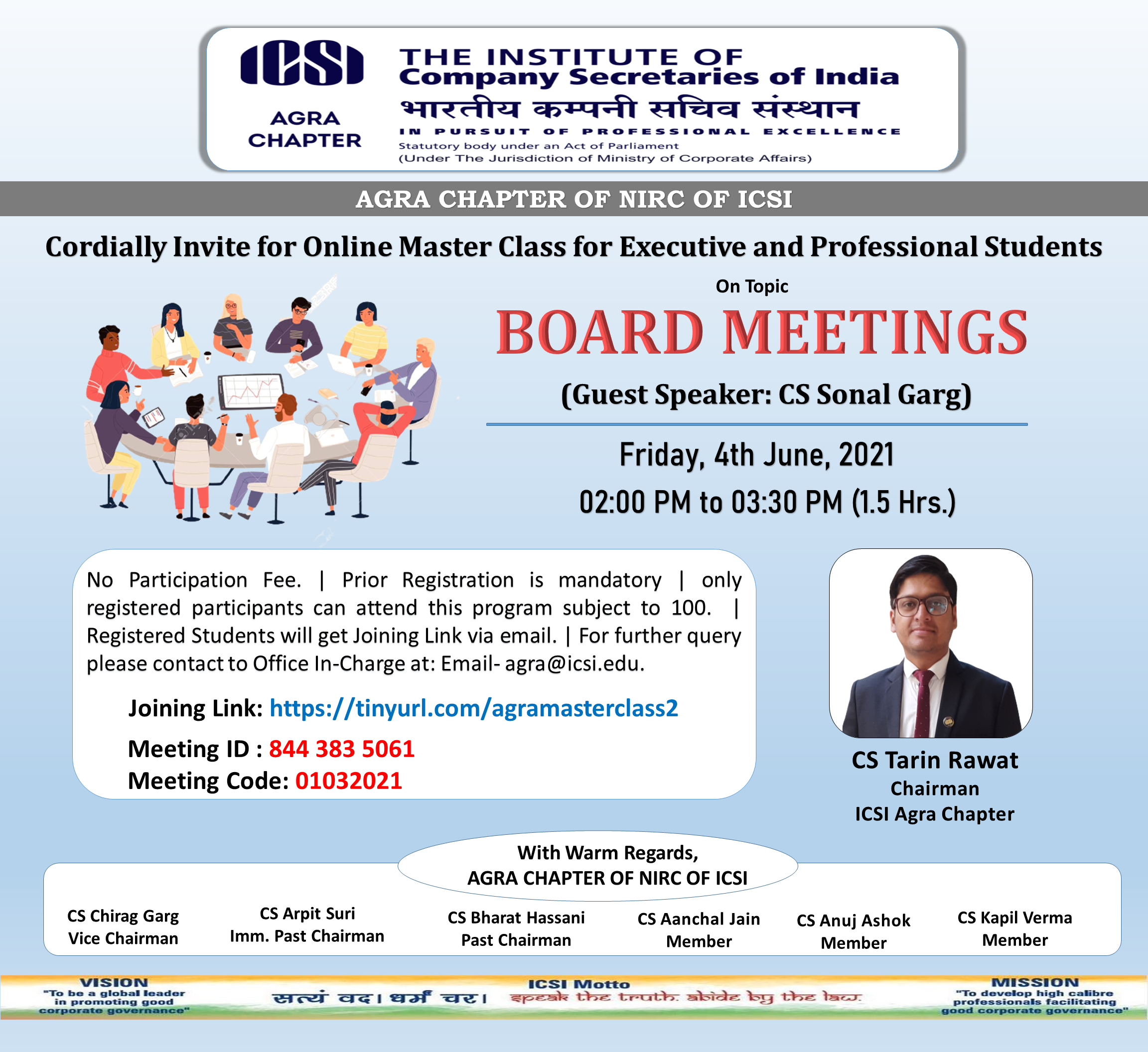 Agra Chapter -Online Master Class for Executive and Professional Students on 4 June 2021, 2:00 PM