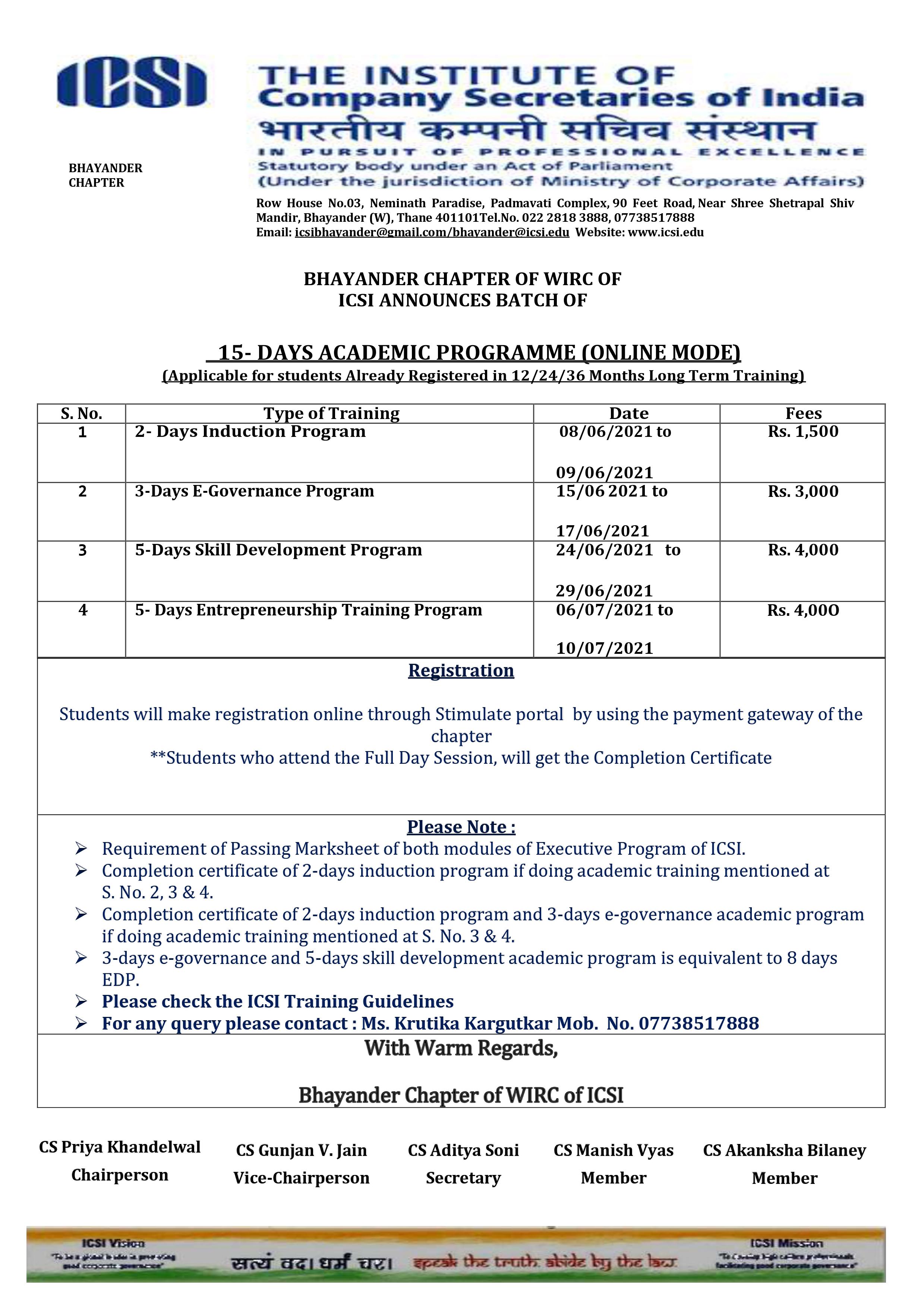 • BHAYANDER CHAPTER - 15 Days Academic Training Program (08.06.2021 to 10.07.2021)
