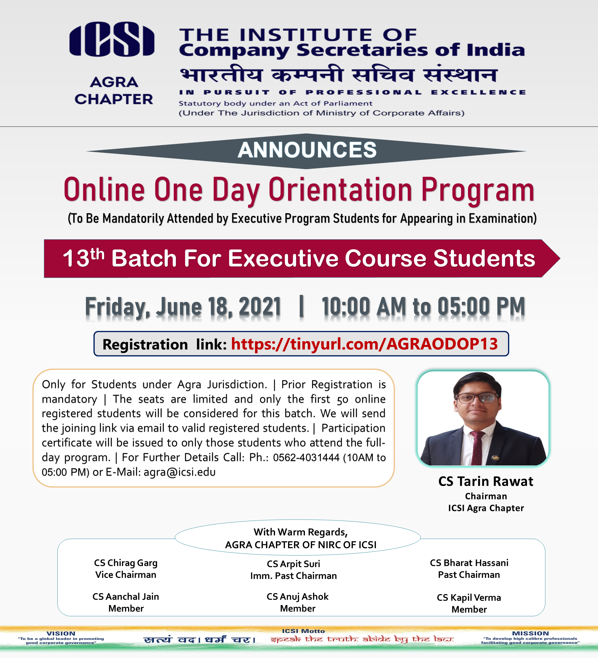Agra Online One Day Orientation Program for Executive Students on 18 June 2021