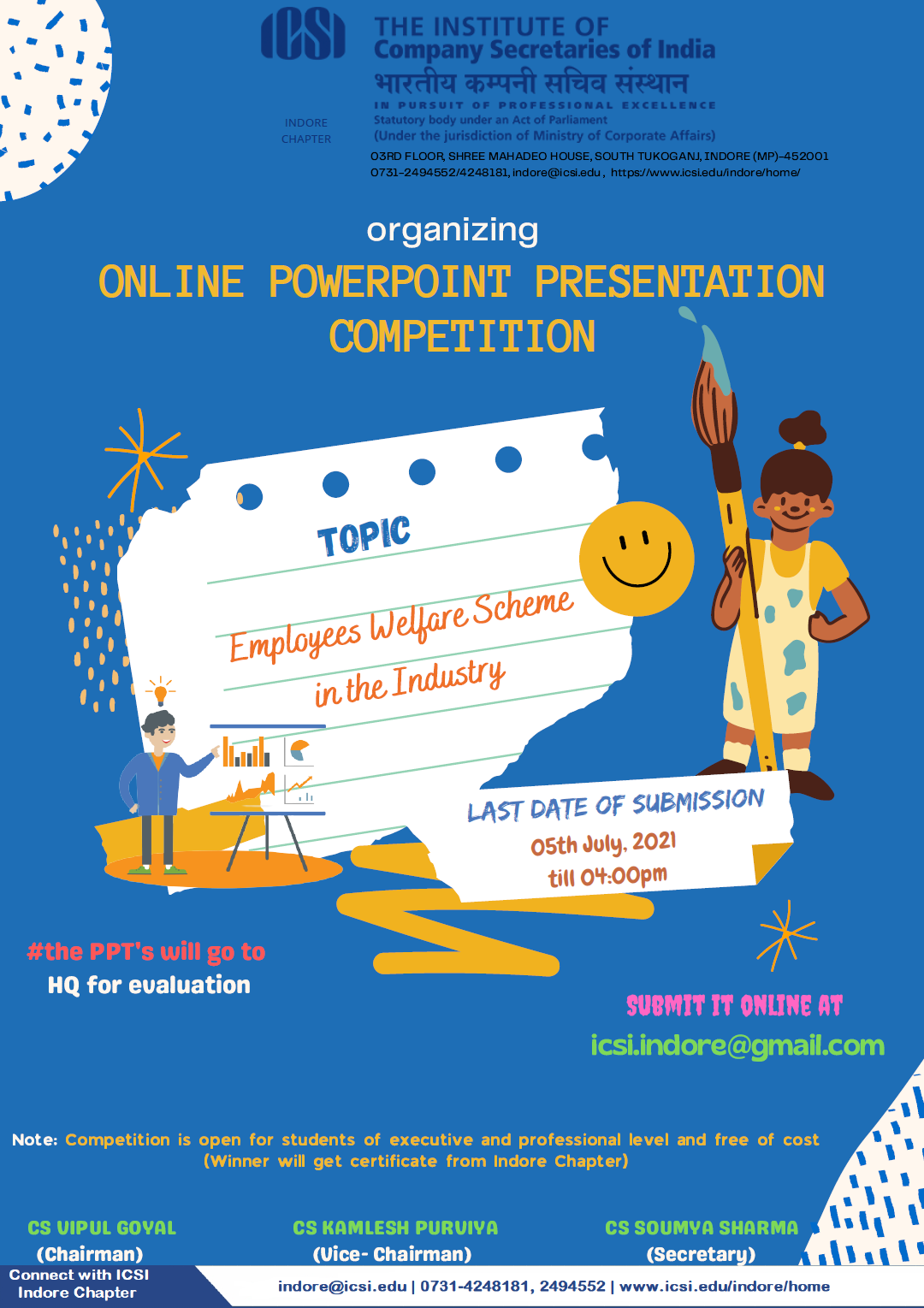 INDORE CHAPTER of ICSI is organizing "ONLINE POWERPOINT PRESENTATION COMPETITION" on 05.07.2021