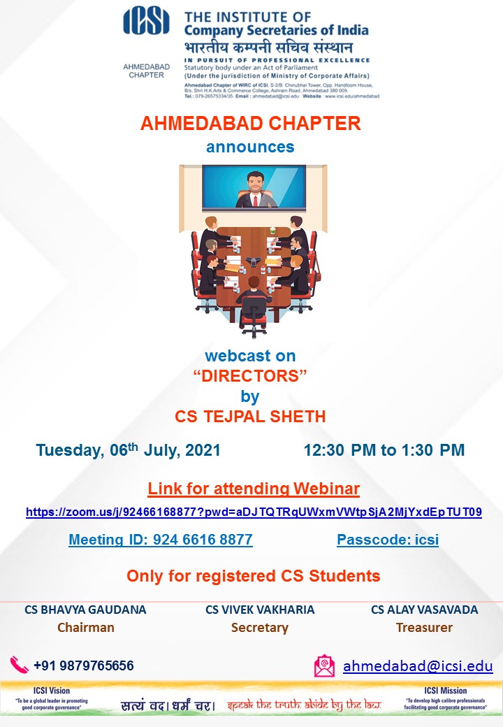 • WEBCAST ON DIRECTORS BY CS TEJPAL SHETH