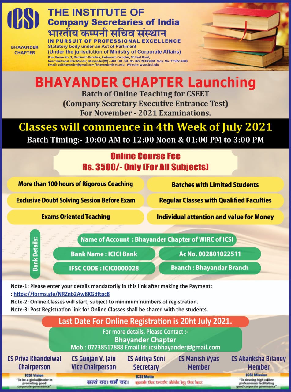 Bhayander Chapter - CSEET Batch for November'21 Examination