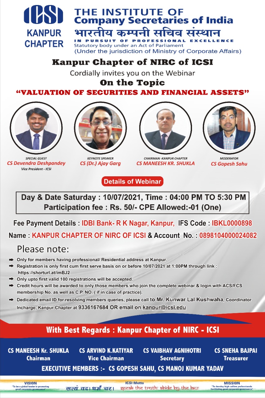 • KANPUR CHAPTER - WEBINAR ON VALUATION OF SECURITIES AND FINANCIAL ASSETS