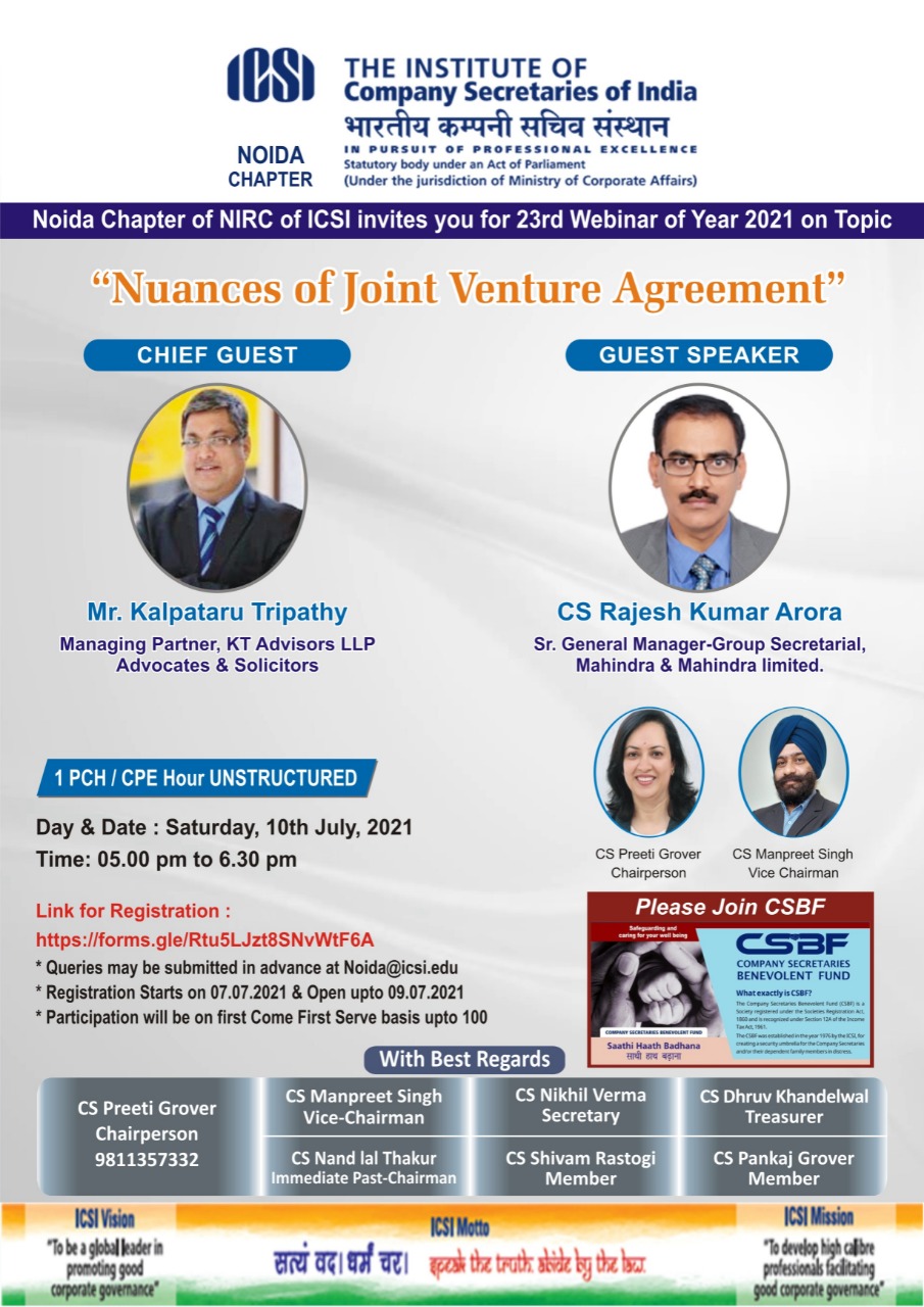 Noida Chapter - Webinar by Noida Chapter on Saturday, 10th July, 2021