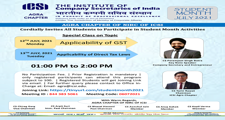 Agra Student Month Special Classes For Students, on 11th & 12th July 2021, at 1:00 PM to 2:00 PM