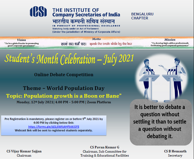 - On account of Student Month Celebration, we are conducting the Debate Competition. Pre-registration is mandatory, please click here to register > https;//forms.gle/djSL6WKdtHFbWJSF8