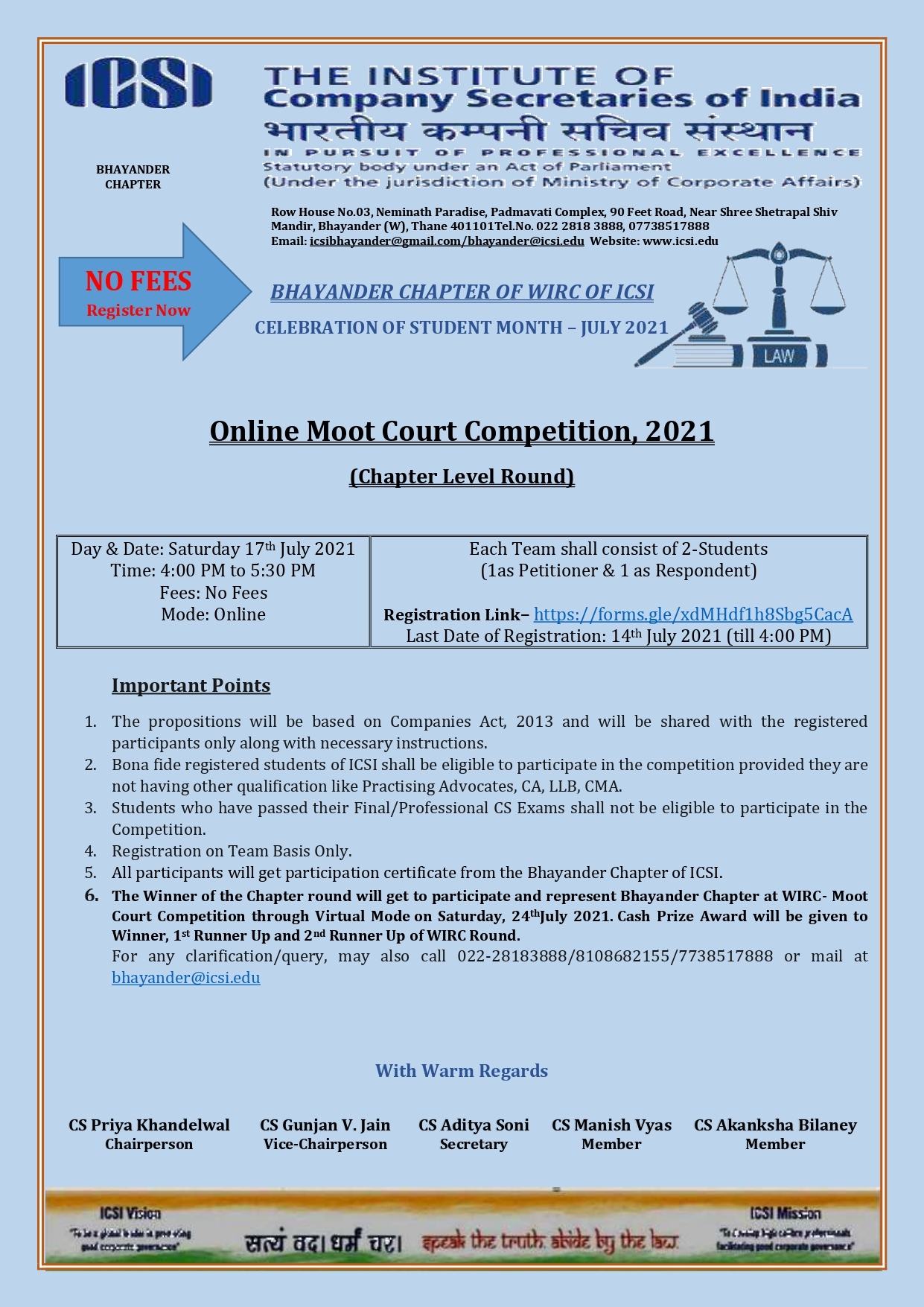 Bhayander Chapter - All India Moot Court 17.07.2021