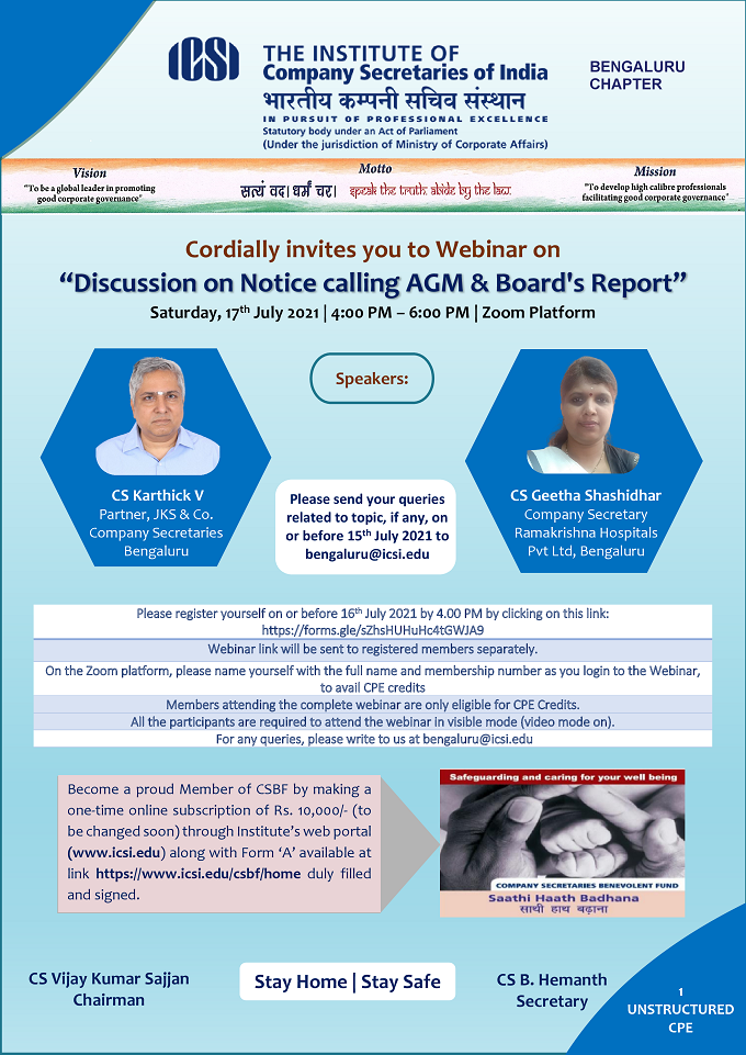 ICSI Bengaluru Chapter organising a webinar