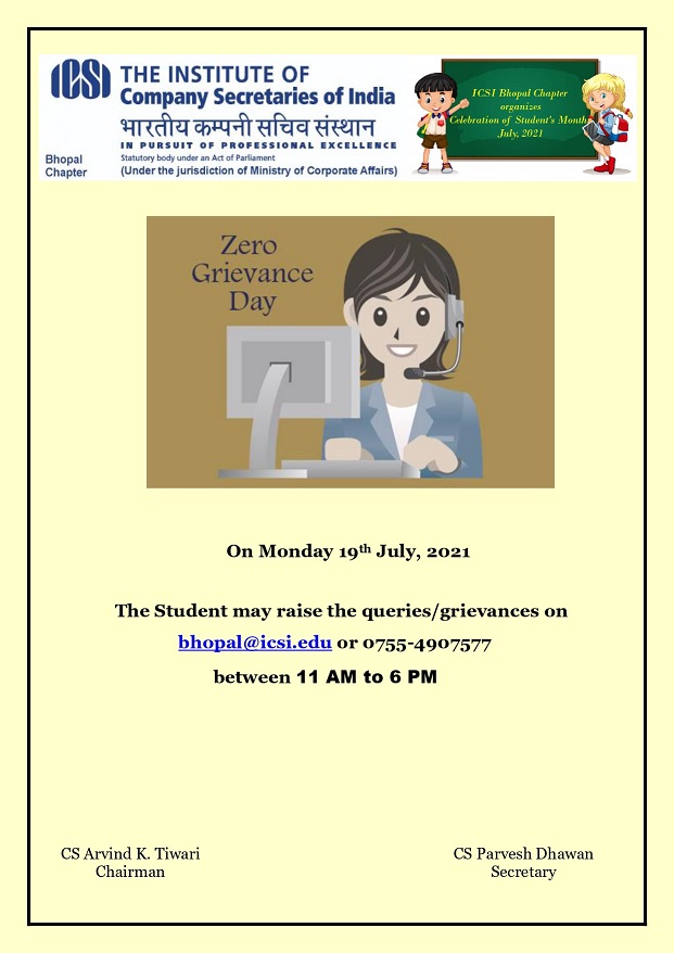 Bhopal Chapter organizes 'Zero Grevance Day' on 19.07.2021