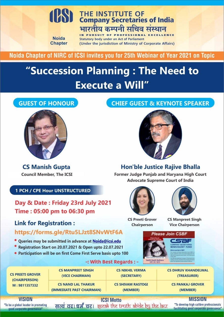 Noida Chapter - Webinar by Noida Chapter on Friday, 23rd July, 2021