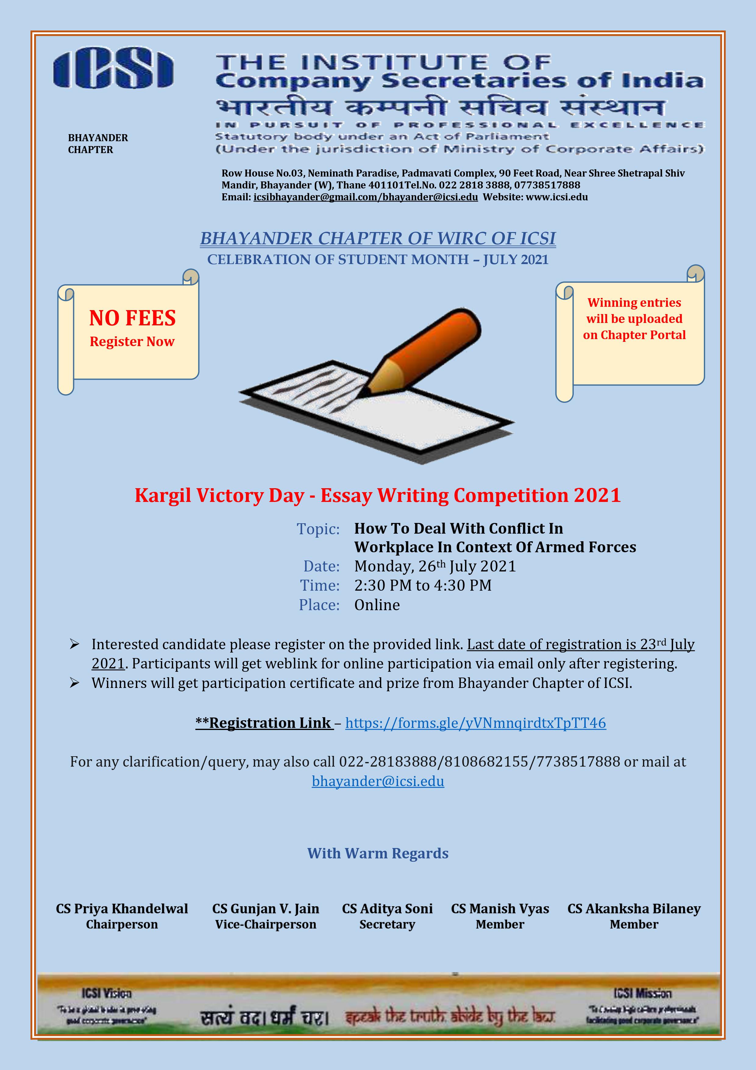 Bhayander Chapter - Essay Writing competition 26.7.21