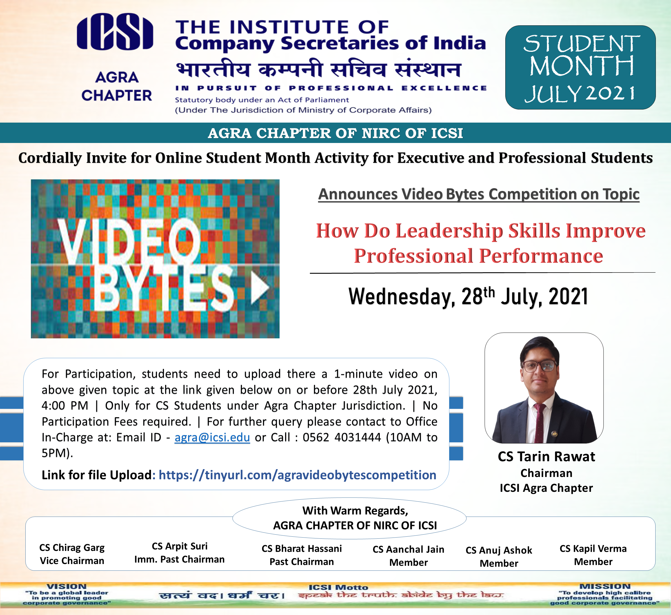 • Agra_ICSI Student Month Activity - Video Bytes Competition, 28 July 2021 (Clink for details)