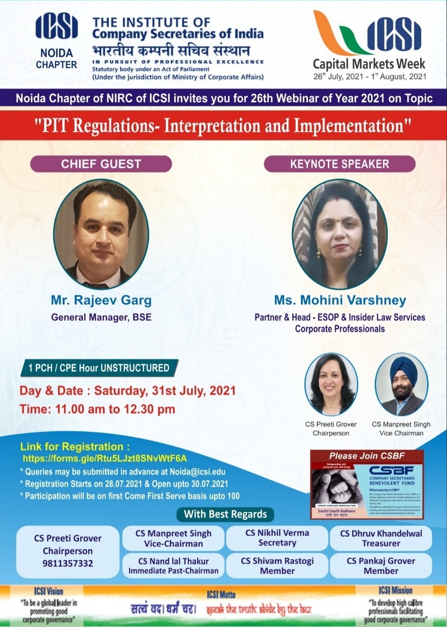 Noida Chapter - Webinar by Noida Chapter on Saturday, 31st July, 2021