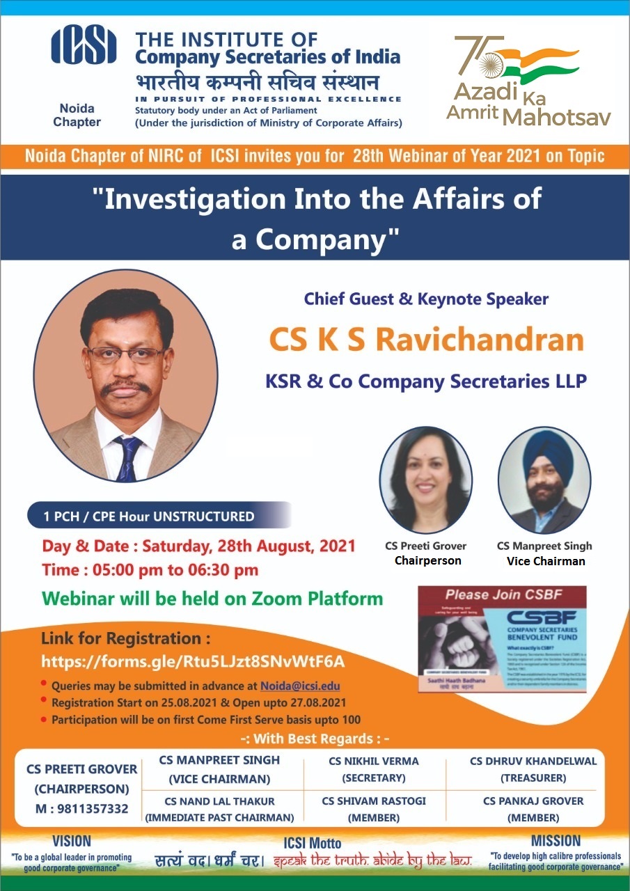 Noida Chapter - Webinar by Noida Chapter on Saturday, 28th August, 2021