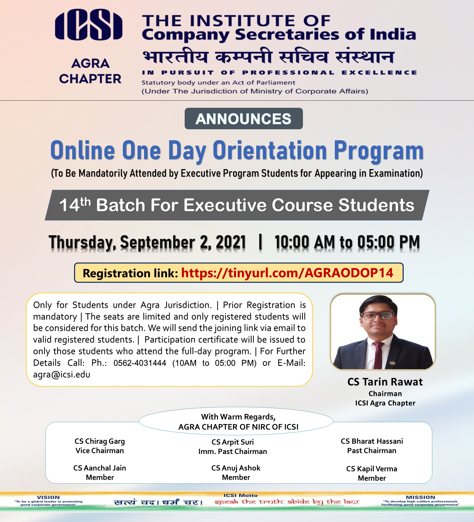 • 18th Batch of One Day Orientation Program (Online Mode), 2nd September 2021, 10 AM onwards
