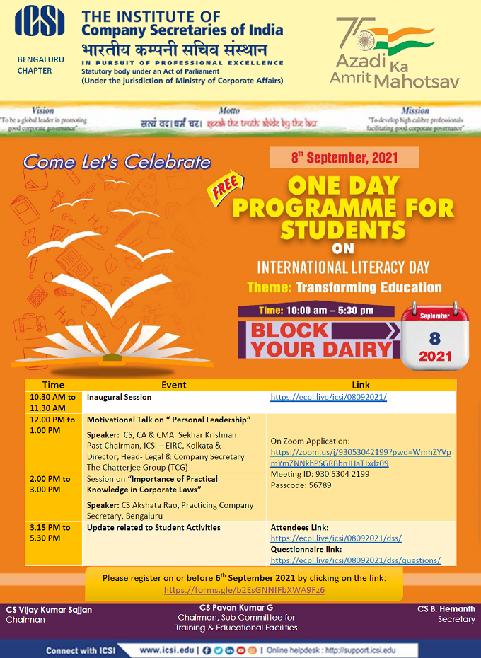 One Day Programme for Students. Click here to register > https://forms.gle/b2EsGNNfFbXWA9Fz6