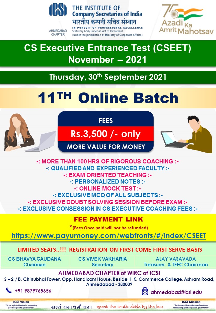 ONLINE BATCH OF CSEET FOR NOVEMBER 2021