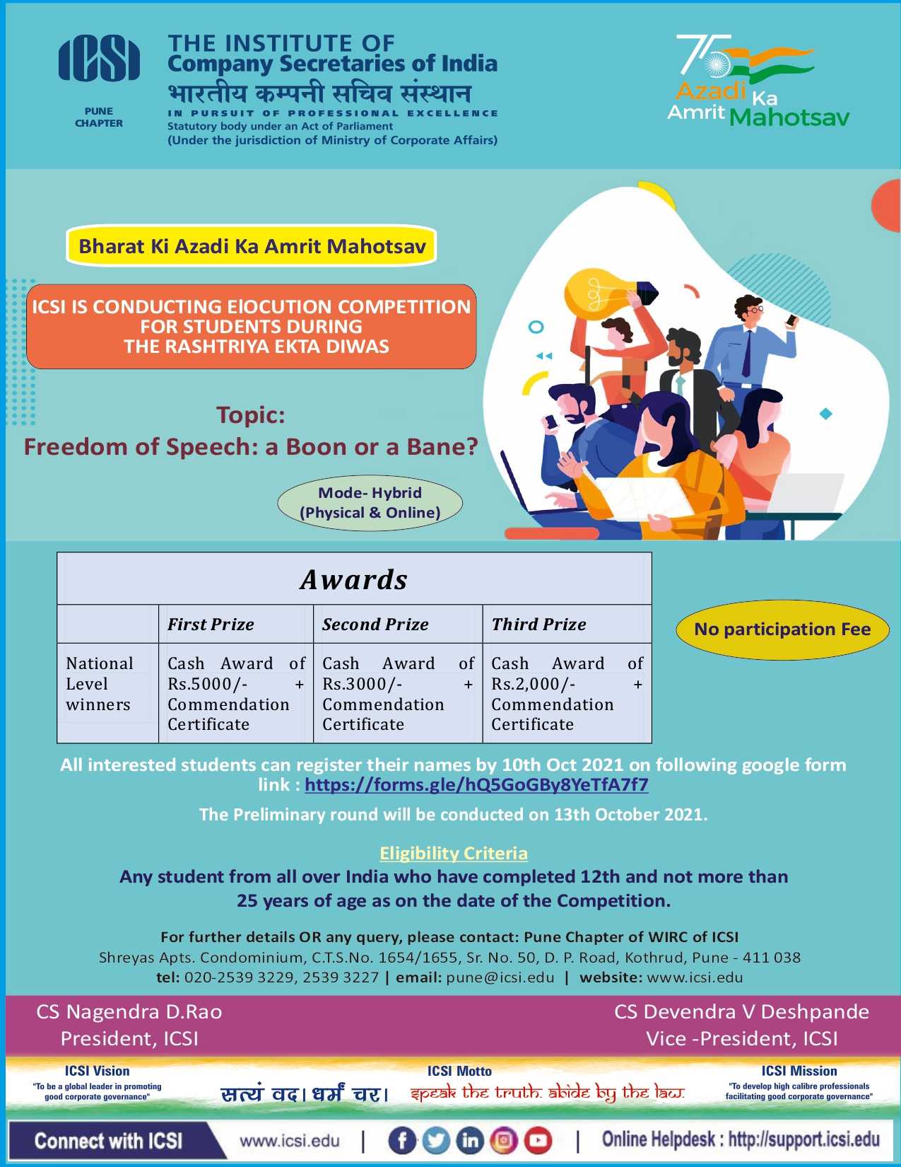 ICSI IS CONDUCTING ELOCUTION COMPETITION FOR STUDENTS DURING THE RASHTRIYA EKTA DIWAS