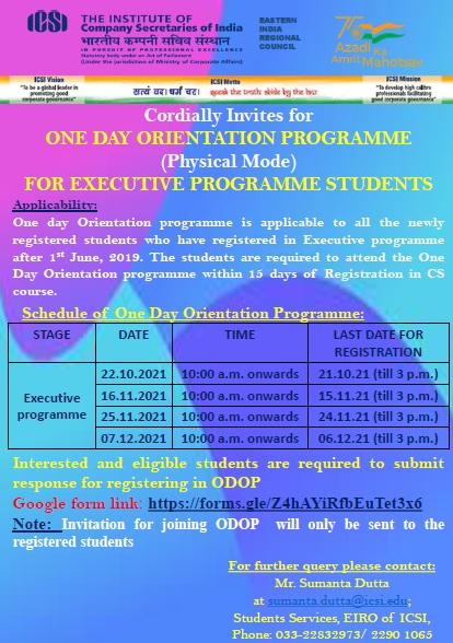 Cordially Invites for ONE DAY ORIENTATION PROGRAMME (Physical Mode) FOR EXECUTIVE PROGRAMME STUDENTS