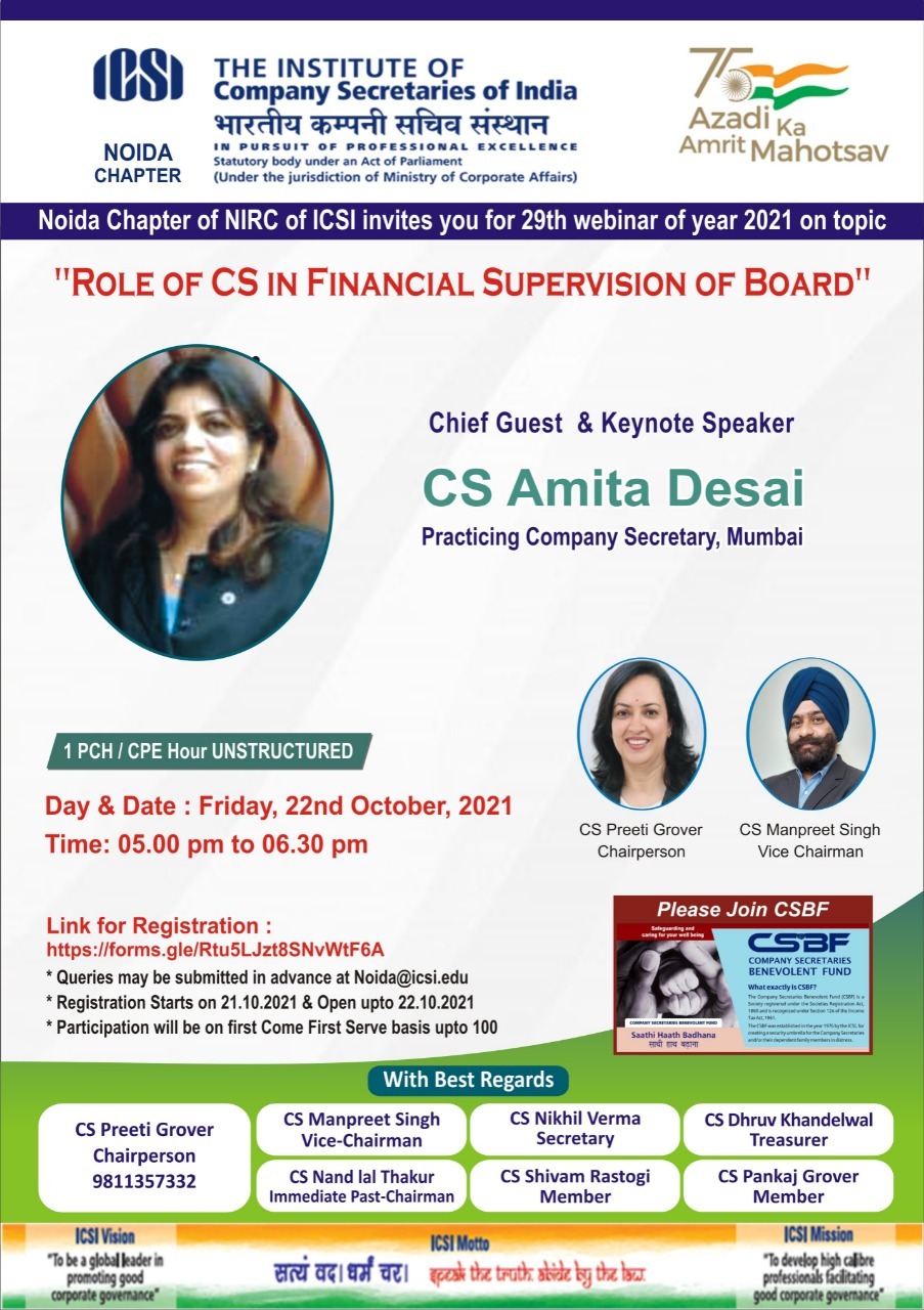 Noida Chapter - Webinar on Friday, 22nd October, 2021