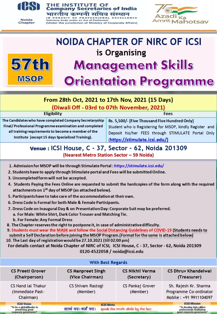 57th Management Skills Orientation Program By Noida Chapter of NIRC of ICSI_from 28.10.2021 to 17.11.2021.