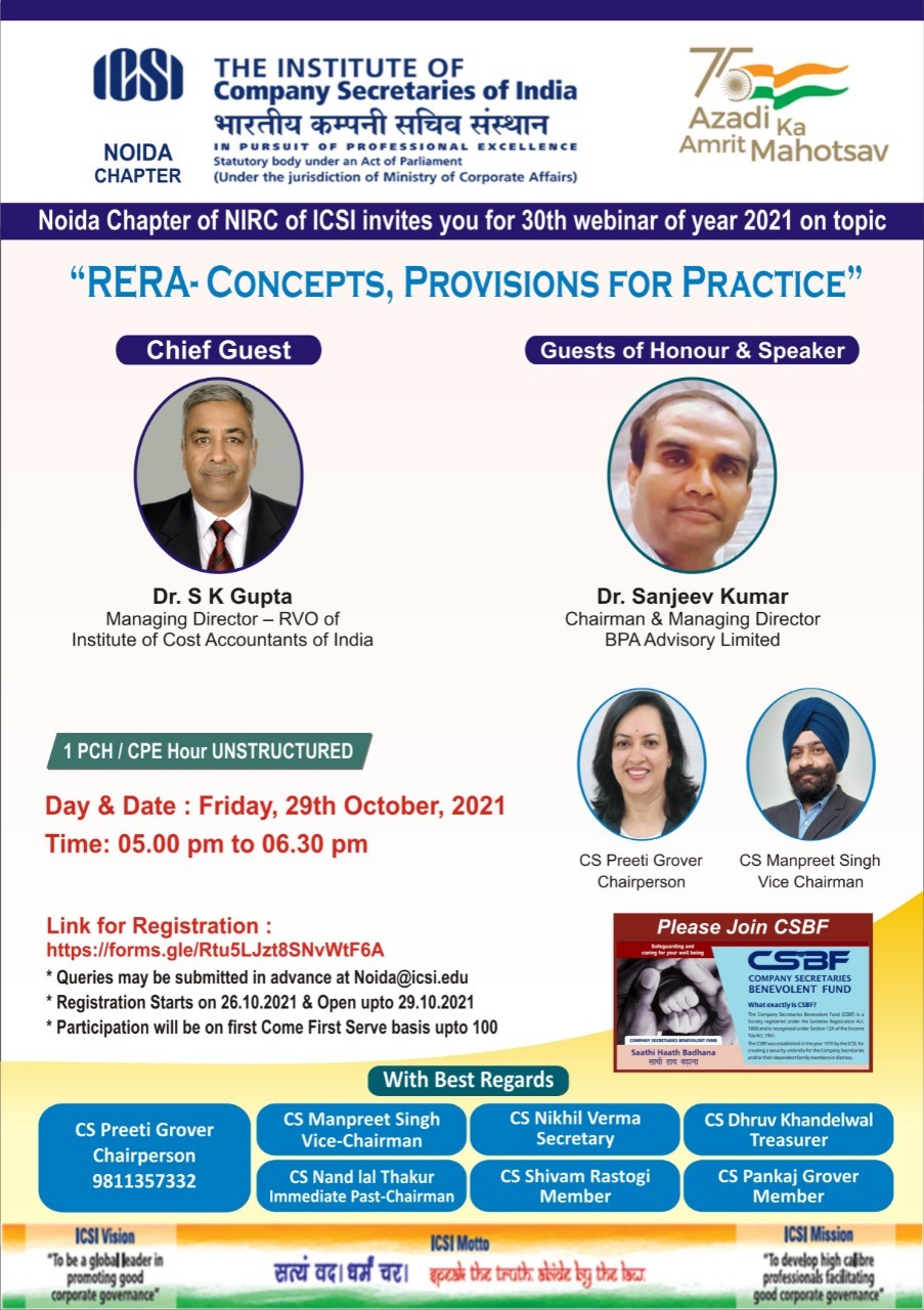 Noida Chapter - Webinar by Noida Chapter on Friday, 29th October, 2021