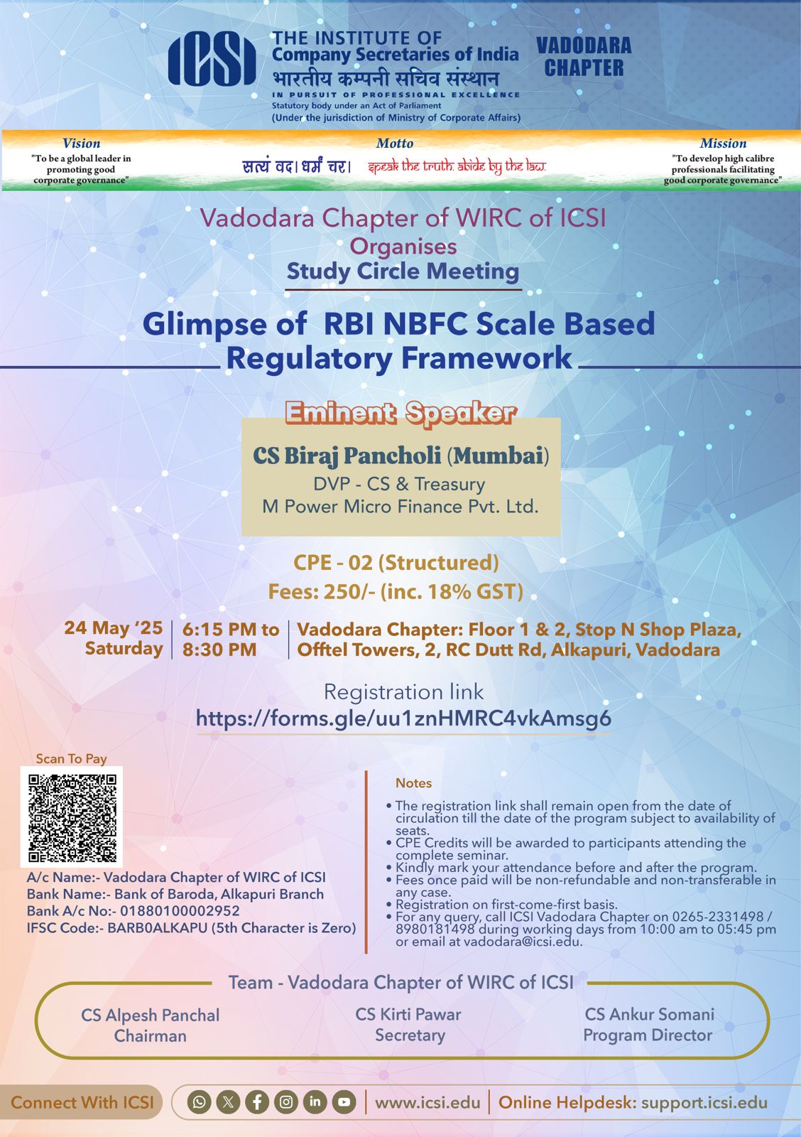 Vadodara Chapter organises Study Circle Meeting on 24th May, 2025