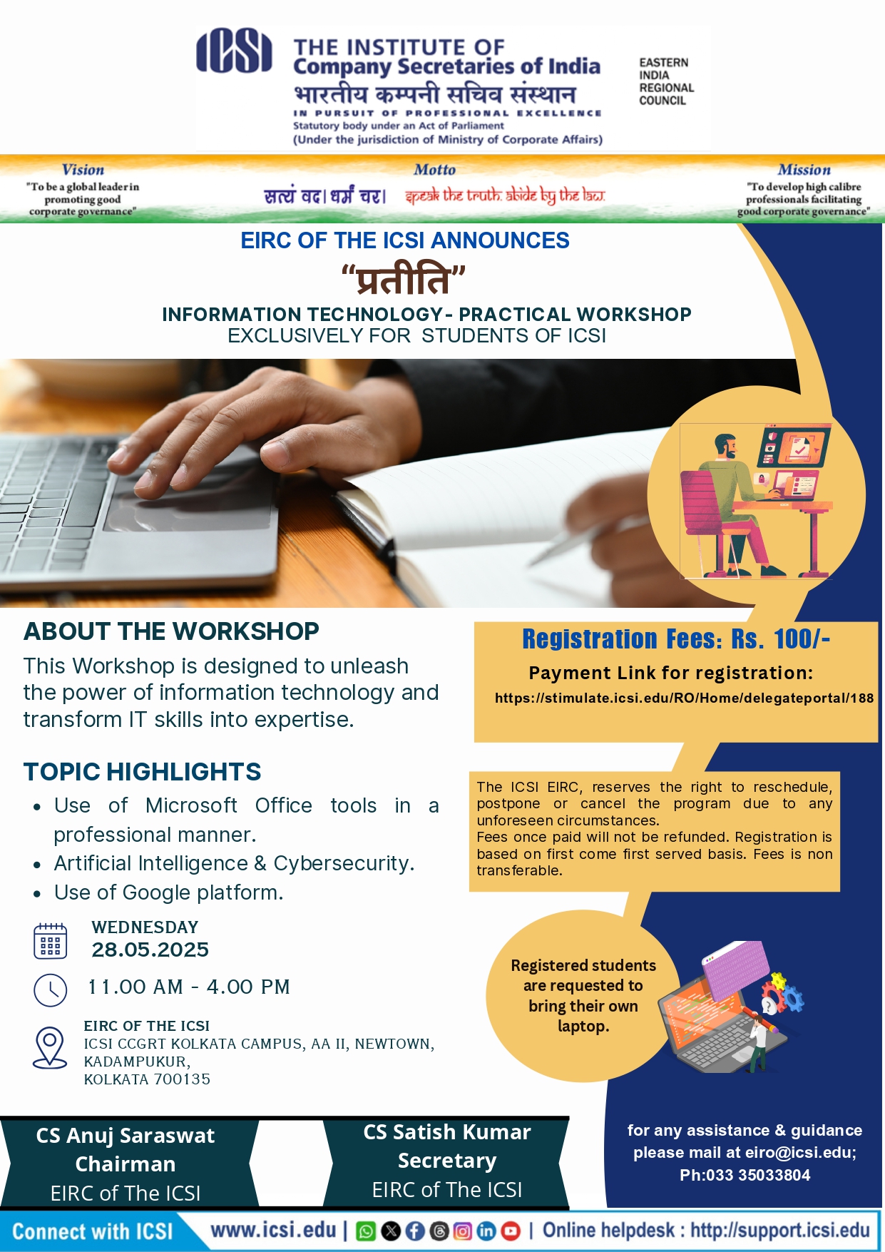 EIRC: Information Technology- Practical Workshop Exclusively for Students of ICSI on 28th May 2025