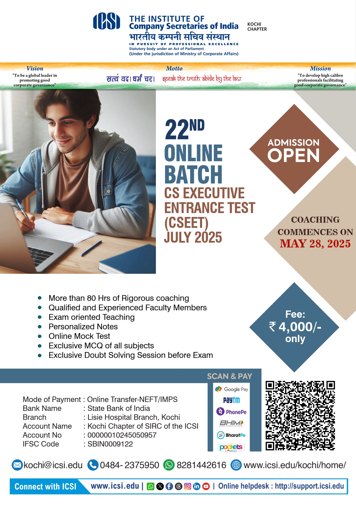 KOCHI-22nd Batch- CSEET Classes - July-2025