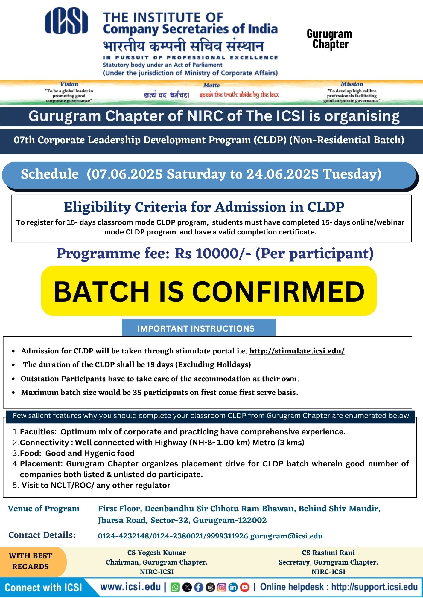07th Corporate Leadership Development Program (CLDP) (Non-Residential Batch) scheduled From 07.06.2025 to 24.06.2025 (BATCH IS CONFIRMED)