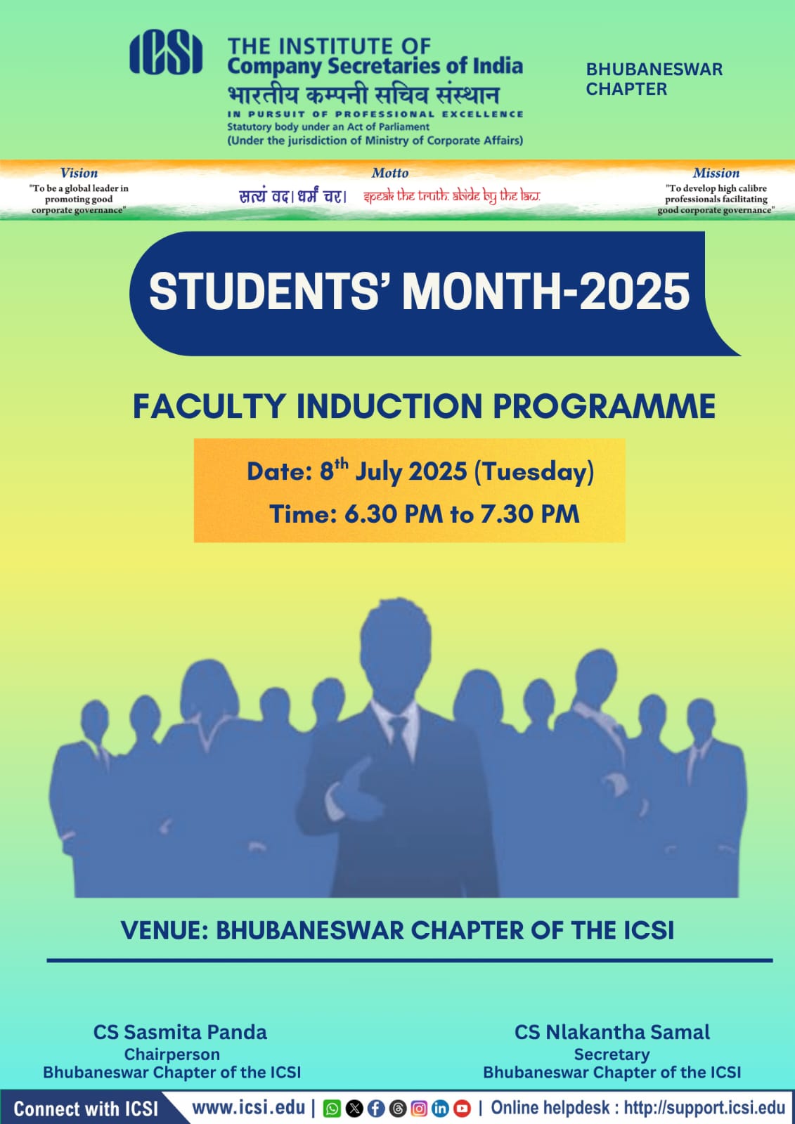 Bhubaneswar Chapter Organizing- Faculty Induction Program on 08th July, 2025 at Chapter Office Premises at 06.30 pm to 07.30 p.m